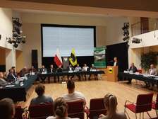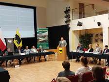 Po zakończonych obradach odbyło się uroczyste przecięcie wstęgi nowej siedziby Zakład Usług Komunalnych w Goniądzu, którego dokonali wspólnie Burmistrz, Dyrektor ZUK oraz Radni.