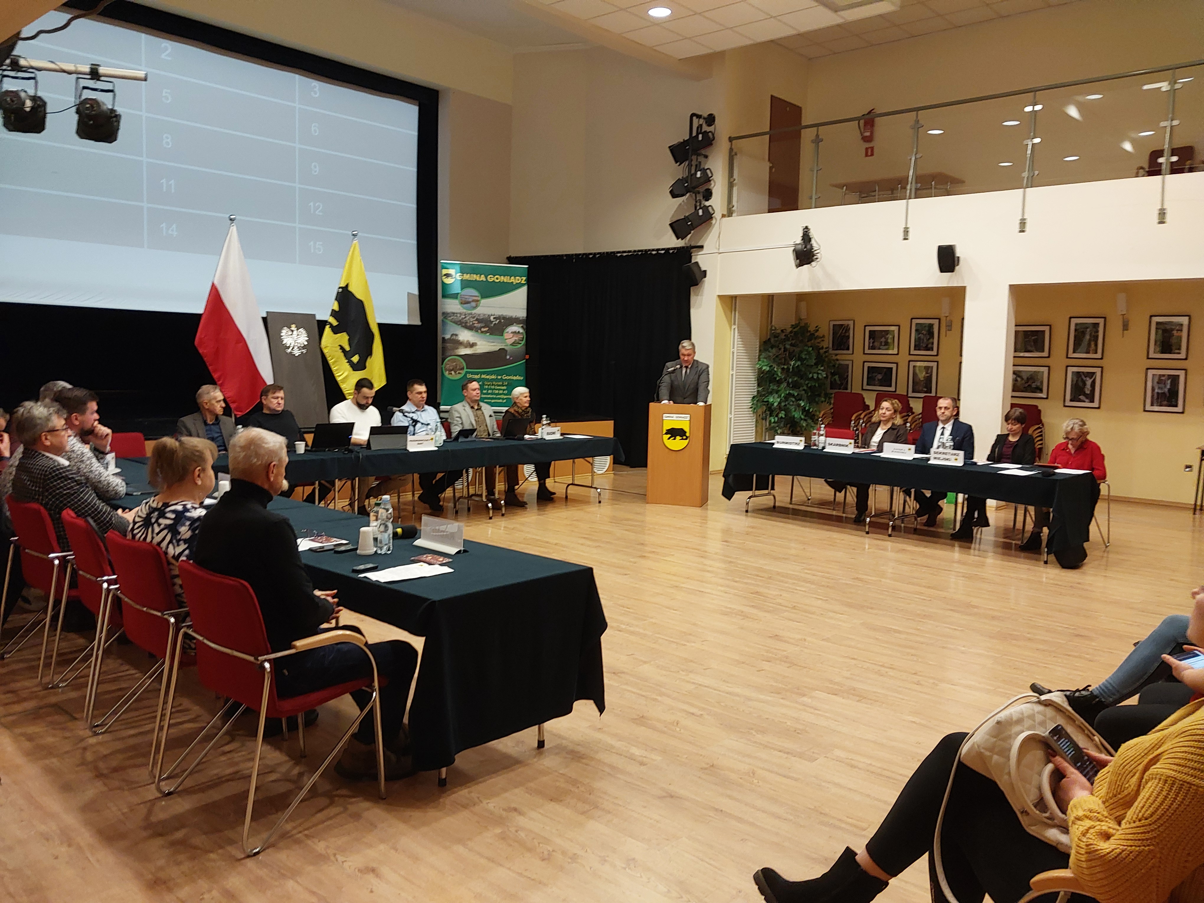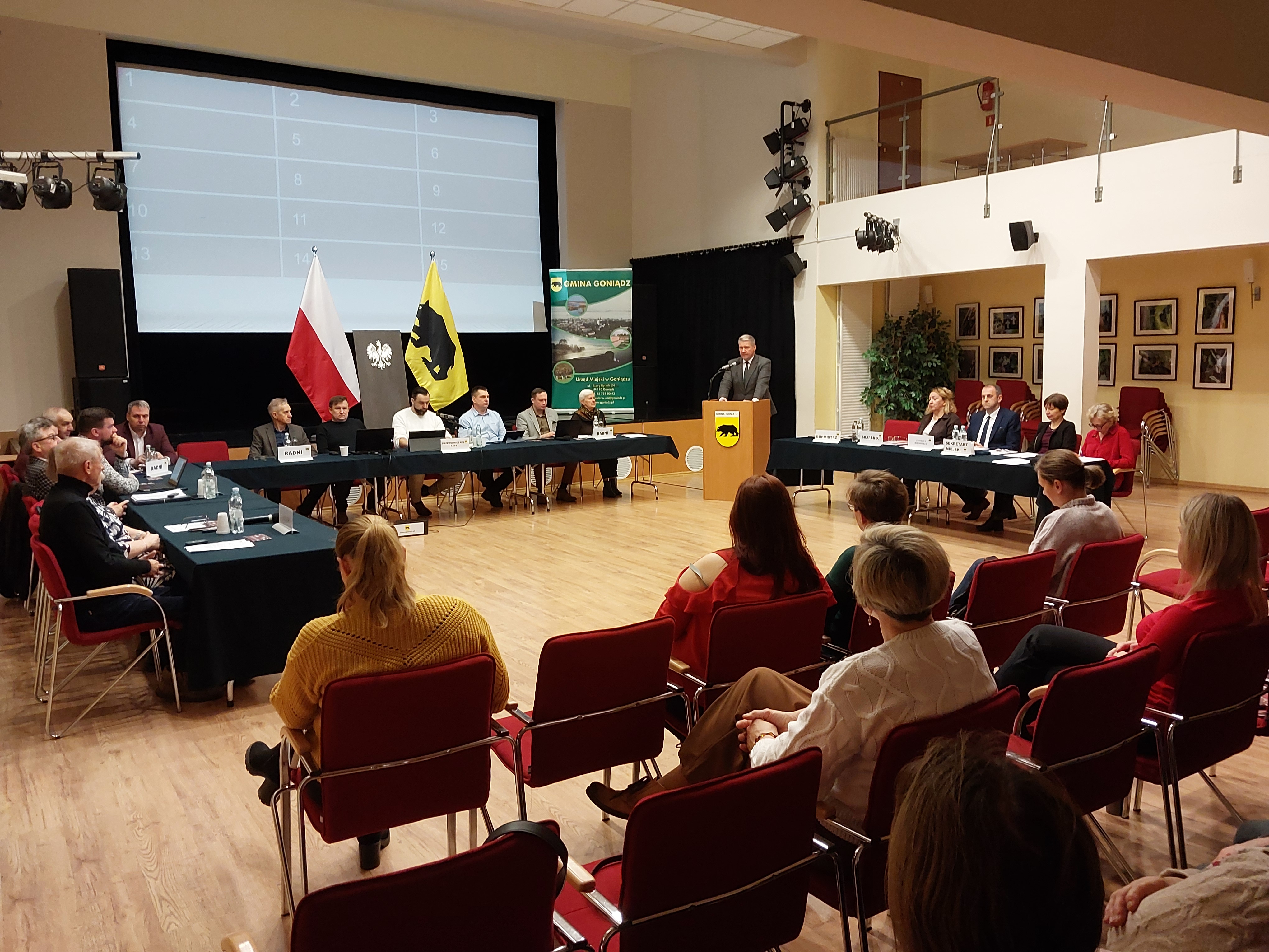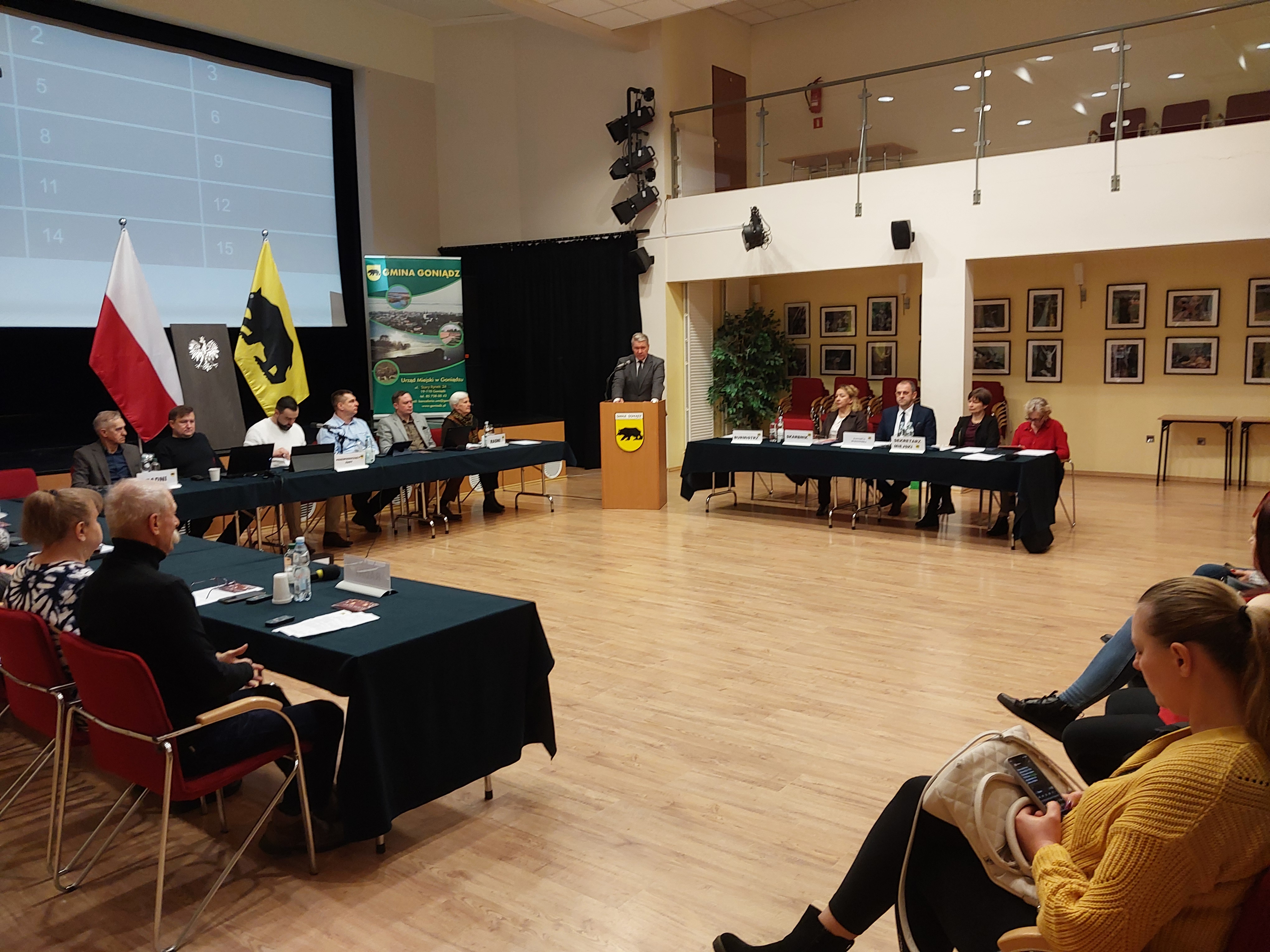 28 listopada 2025 r. w sali Gminnego Ośrodka Kultury w Goniądzu odbyła się XIV Sesja Rady Miejskiej. Obrady rozpoczęły się o godzinie 11:00 pod przewodnictwem Przewodniczącego Rady, Rafała Kazimierza Maciucha.